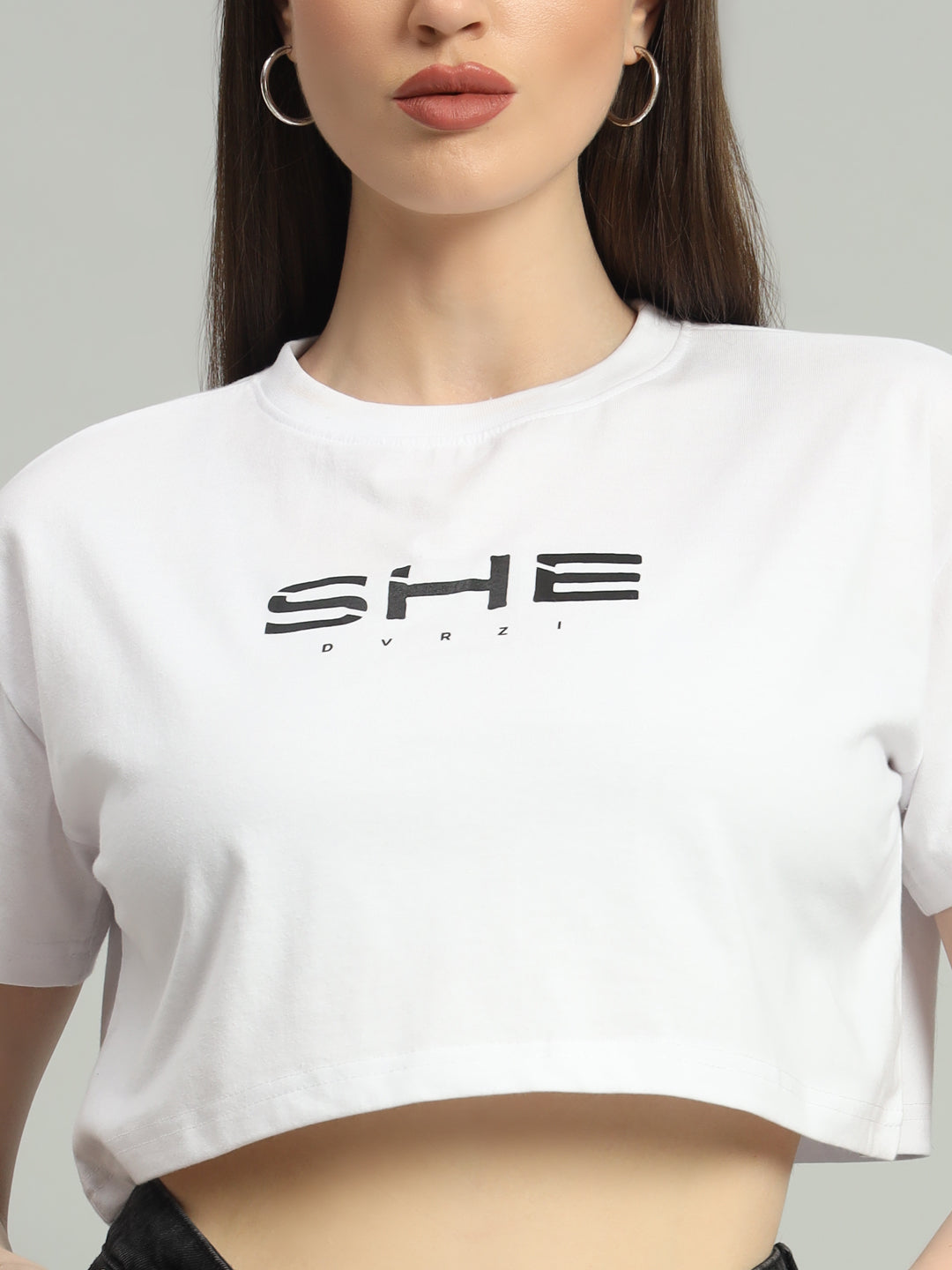 Relaxed-fit cropped top in soft cotton jersey with a print motif on the front. Rib-trimmed round neckline and short sleeves.